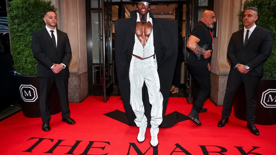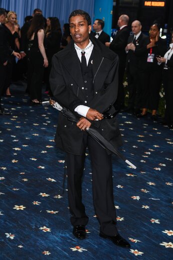 Американский танцор и модель Элтон Мэйсон появился в кастомном Gaurav Gupta, а возлюбленный рэпера A$AP Rocky в костюме от AWGE.