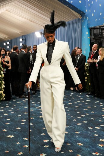 Актриса Зендея выбрала белый смокинг Louis Vuitton, а модель Имаан Хаммам отдала предпочтение костюму от Magda Butrym.